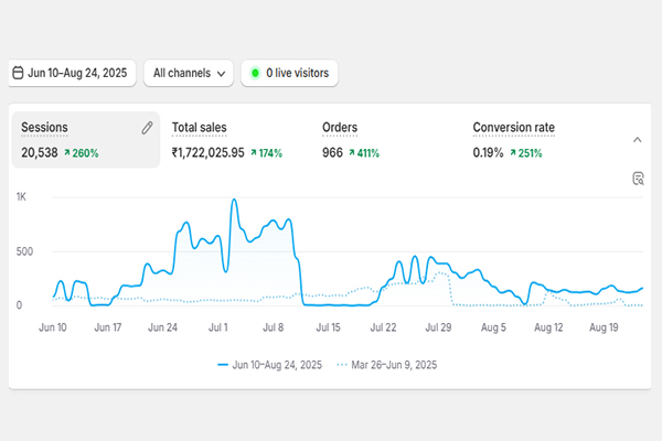 The performance marketing campaigns for Ori & Tesa successfully transformed it into a fast-scaling skincare brand in India. With ₹1.7M+ in sales and nearly 1,000 orders in just over two months, the campaigns validated both product-market fit and scalability potential.